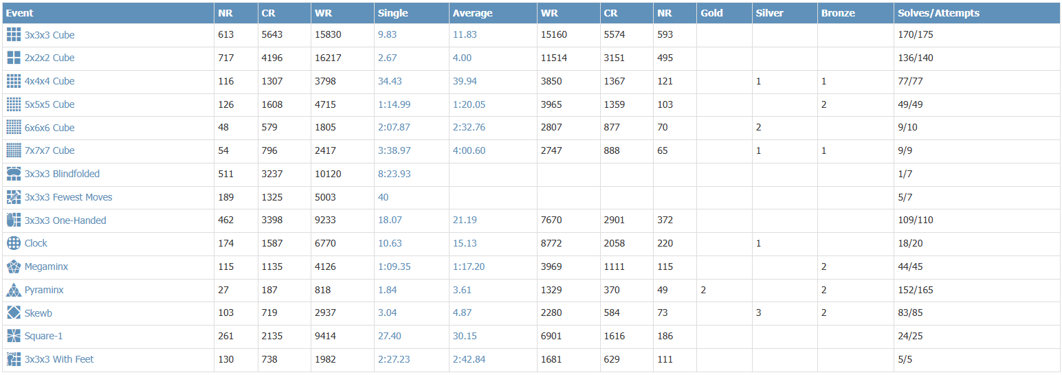 Additionally, I am a dedicated speedcuber, competing since 2017 in World Cube Association events. I am ranked among the top 80 speedcubers in India, with a notable pyraminx solve of 1.84 seconds, ranking me 20th nationally.